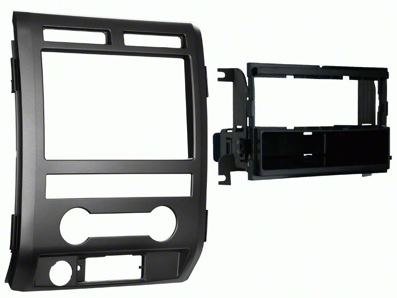 Factory Appearance. Get professional results when installing an aftermarket single or double din radio in your F-150 with this Single/Double Din Radio Installation Kit. This Kit includes an OE style trim panel bezel and radio housing for a drop-in install that provides a factory appearance when complete.