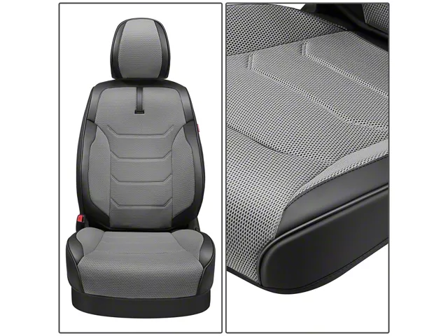Construction and Appearance. Crafted from a combination of leatherette and polyester upholstery, these covers balance strength with breathability. The padded structure adds comfort during long drives, while the smooth Gray/Black design provides a sleek, modern look that complements many interior styles. With quality materials, the Sport Series covers are built to withstand daily use.