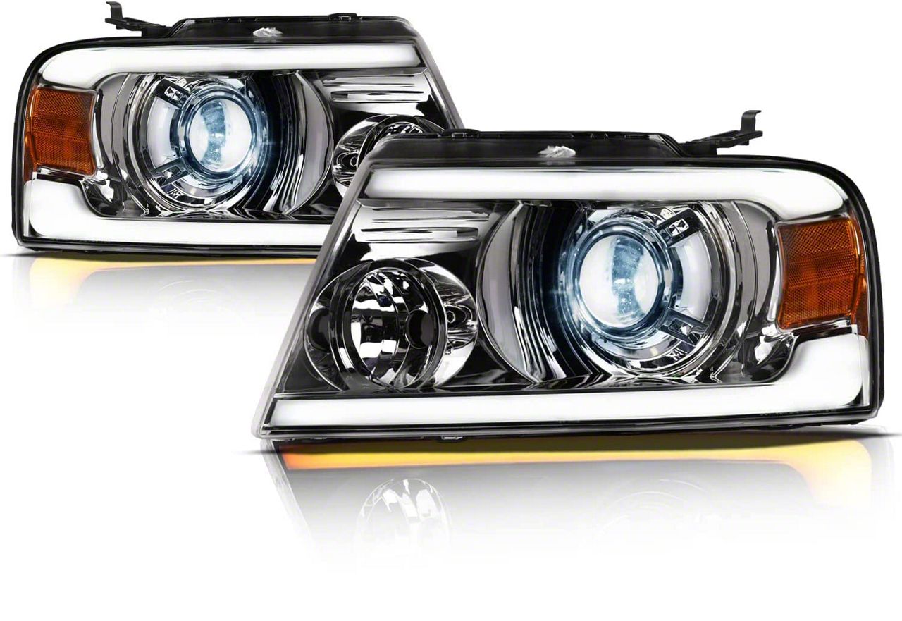 Application. This SQX Series LED Projector Headlights fits 2004-2008 Ford F-150 models. Offering superior lighting performance and a contemporary style, these headlights not only improve safety but also add a touch of sophistication to your vehicle’s exterior.