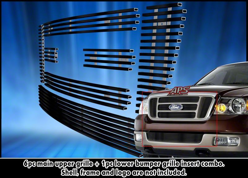 Stainless Steel Billet Upper and Lower Overlay Grilles; Black (04-08 F-150 w/ Factory Bar Style Grille)Find parts that fit my vehicle