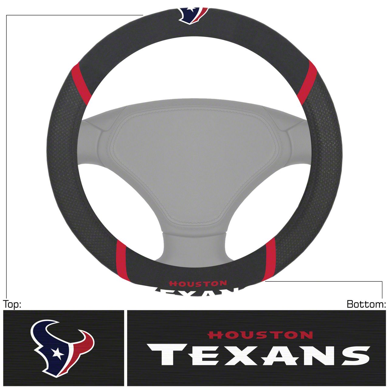 Steering Wheel Cover with Houston Texans Logo; Black (Universal; Some Adaptation May Be Required)