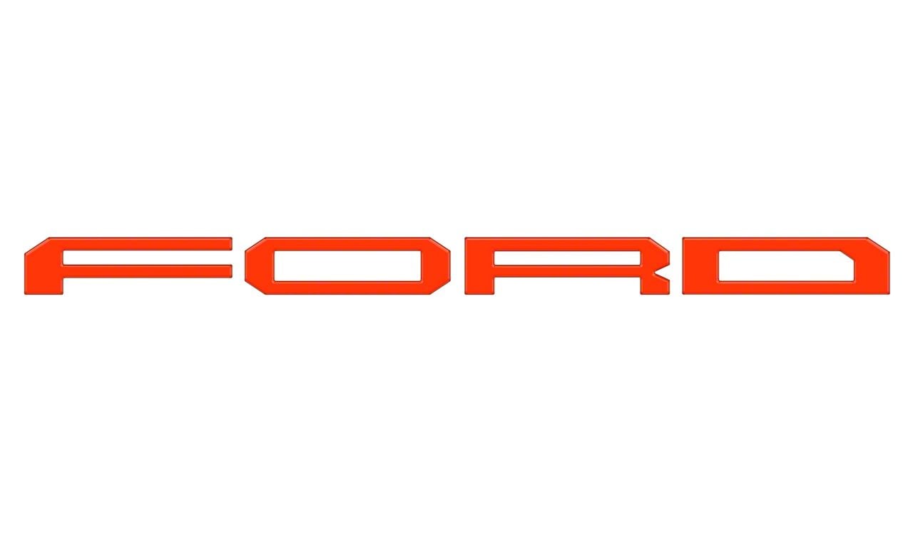 Enhance Your Vehicle's Rear Profile. Give your F-150 Raptor a bold and distinctive look with these Tailgate Letter Overlays in vibrant Code Orange. This set includes individual "F" "O" "R" "D" letters, designed to perfectly overlay the existing tailgate applique.