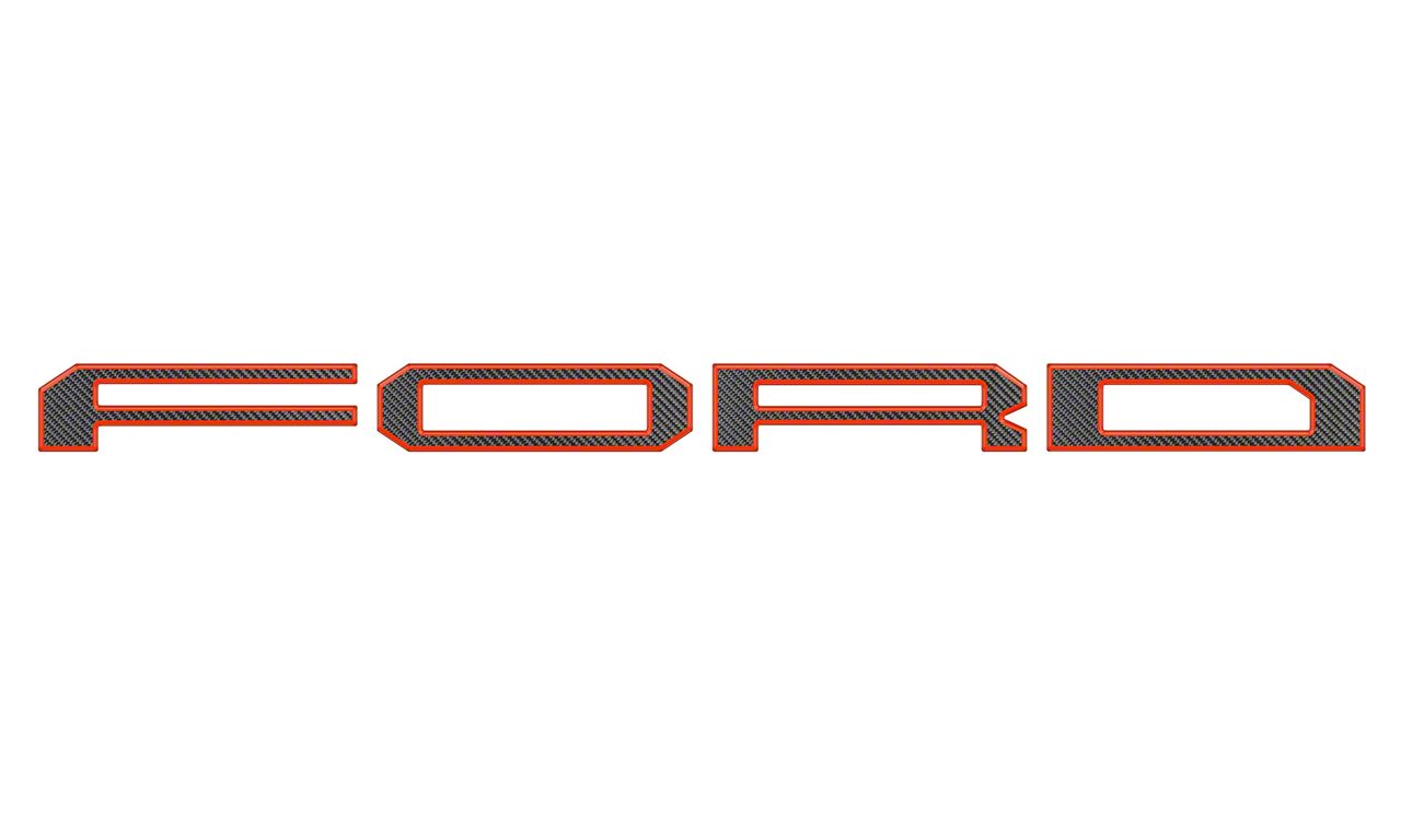 Official Ford Product. Made for the Ford F-150 Raptor, these Tailgate Letters Overlays come in a black carbon fiber finish with a code orange outline. Built as an official Ford licensed product, these Tailgate Letters Overlays offer a set of stylish and raised letters forming the Ford letter logo to give your ride a unique look.