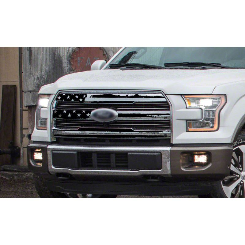 Application. This Tattered American Flag Grille Decal in Gloss White fits all 2015-2017 Ford F-150 Lariat models.