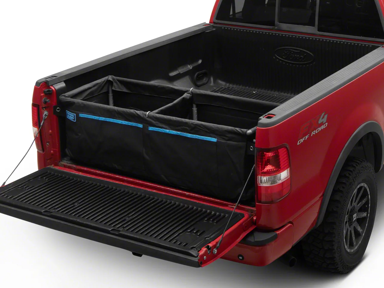 A Place for Everything. Keep everything in your truck bed well organized with the Tonneau Buddy Full Size. This truck bed cargo organizer measures 58 1/4-inch long by 20 1/4-inch deep by 18 1/4-inch (maximum) height, and over 12 cubic feet is large enough to hold your accessories and gears and keep them clean, safe, and in their right place. It’s waterproof and height-adjustable and features 16 pockets and 1 divider. This tonneau cover storage also has PVC feet to keep it from sliding and grommets on each end that you can use as tie-downs.