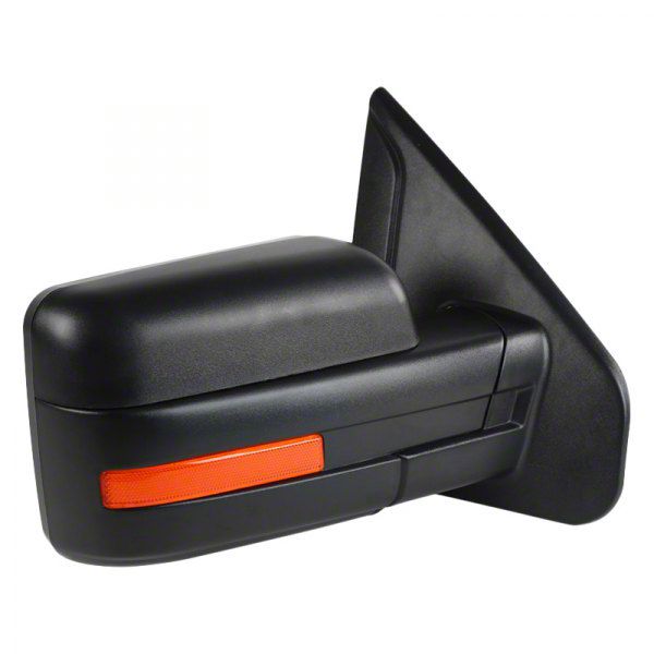 Upgraded Mirror Replacement. Standard side mirrors are no longer enough for everyday driving. The Towing Mirror; Passenger Side; Black offers mechanized functioning and reduces accidents thanks to its bright built-in turn signal while alsoraisingthe elegance and practicality of your Ford.