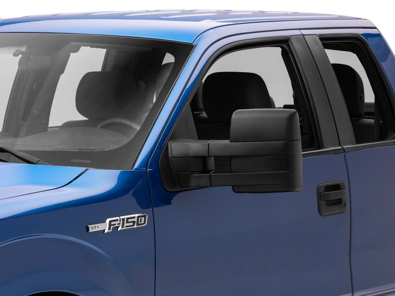 Application. The Manual Adjustable Towing Mirrors; Black fits 2004-2014 F-150 Models. that is NOT equipped with Powered/Heated Mirrors.