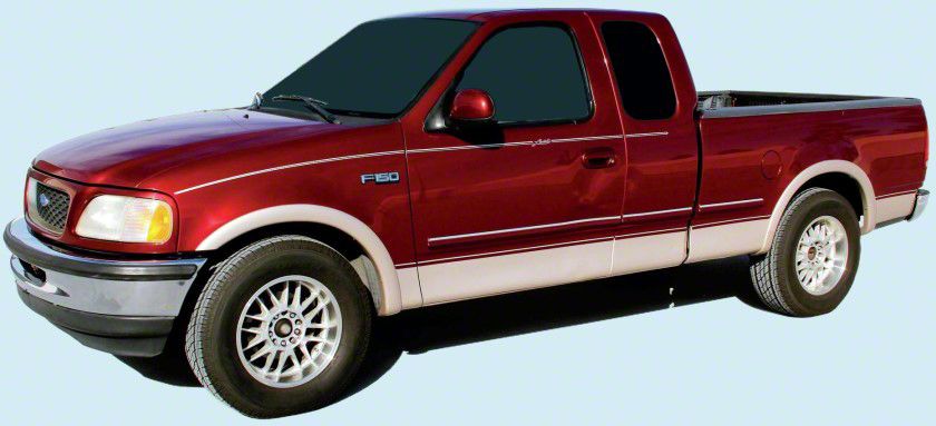 Elevate Your F-150's Style. Transform your 1997-2000 F-150 Lariat into a head-turner with our premium Upper and Lower Stripes in Gold/Toreador Red. These meticulously crafted stripes are designed to perfectly complement the classic lines of your F-150 Lariat, adding a touch of vintage flair and modern sophistication.