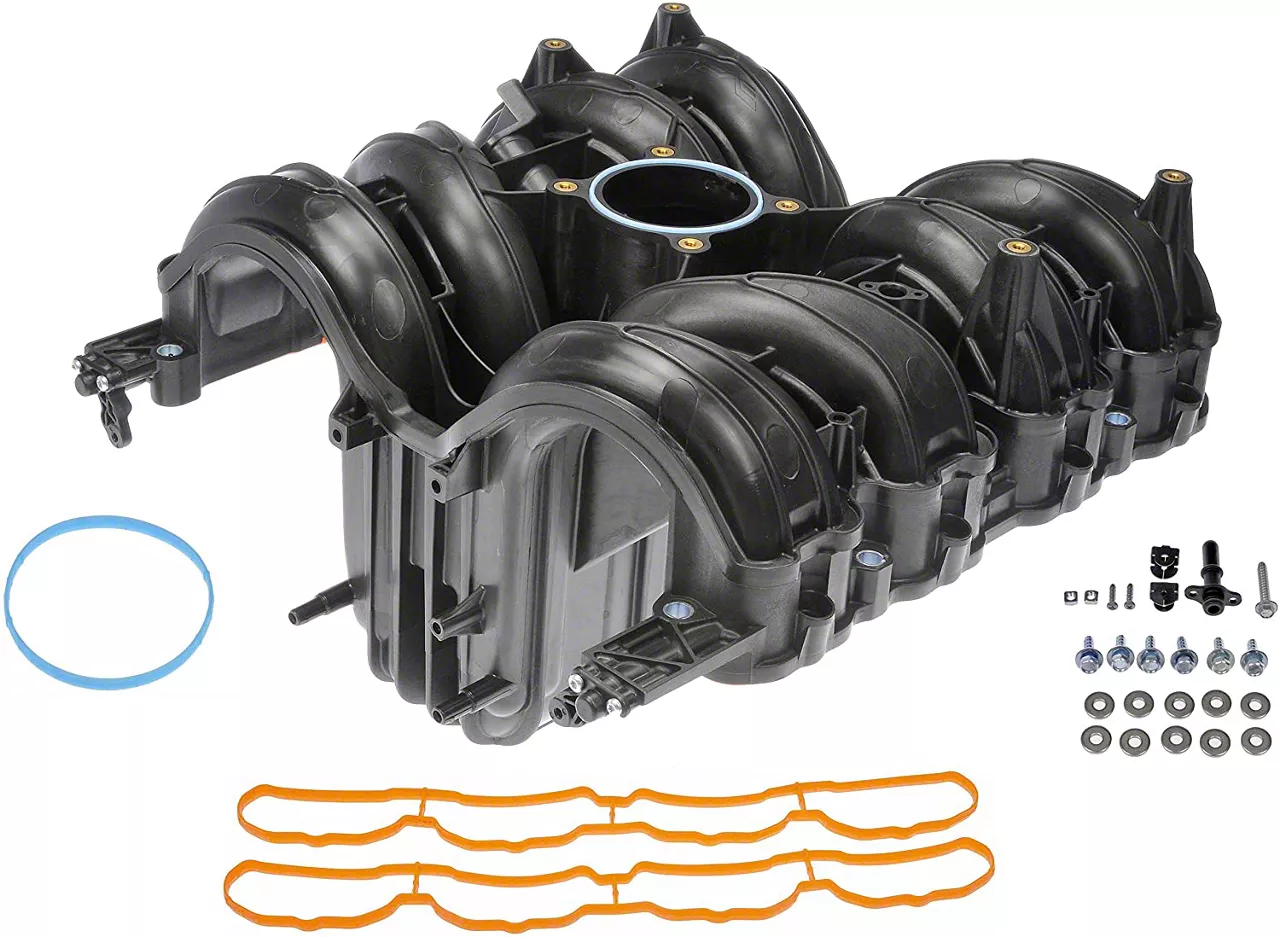 Brawny Synthetic Fabrication. The Upper Plastic Intake Manifold is fabricated from high-heat resisting polymers that are laced with hardening compounds for extra rigidity and engine-bay serviceability. It is also left in its raw black look for a cleaner and more inconspicuous engine aesthetic.