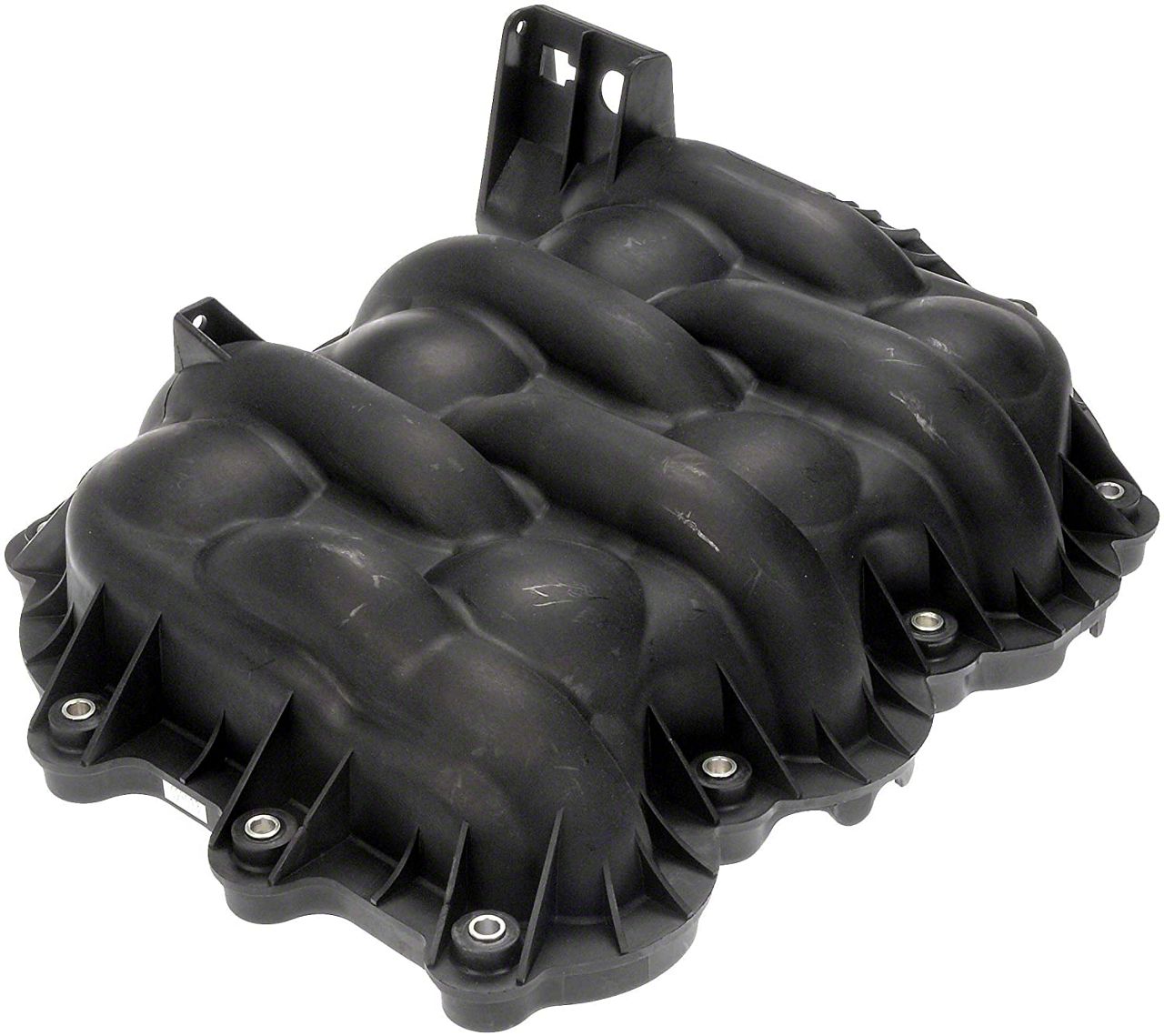Construction and Appearance. Constructed from durable black composite plastic, this Intake Manifold is designed to withstand the rigors of engine heat and pressure. Its design includes an integrated PCV nipple to ensure proper vacuum routing and an updated thermostat design to prevent coolant leaks. The manifold's finish and fit are designed to match the factory original, ensuring a seamless replacement.