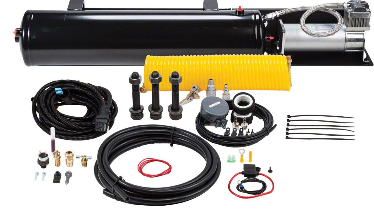 Supplies Air to Air-Operated Accessories. If your truck has air-operated accessories such as air horns and air bags, it’s a good idea to invest in this Veloci-Raptor Bolt-On Onboard Air System. This equipment comes with a heavy-duty 150 PSI 50% duty cycle air compressor as well as a 1.50-gallon air tank. With these components working together, you can inflate your air-operated accessories at any time or make your truck’s air horns generate a loud honk.