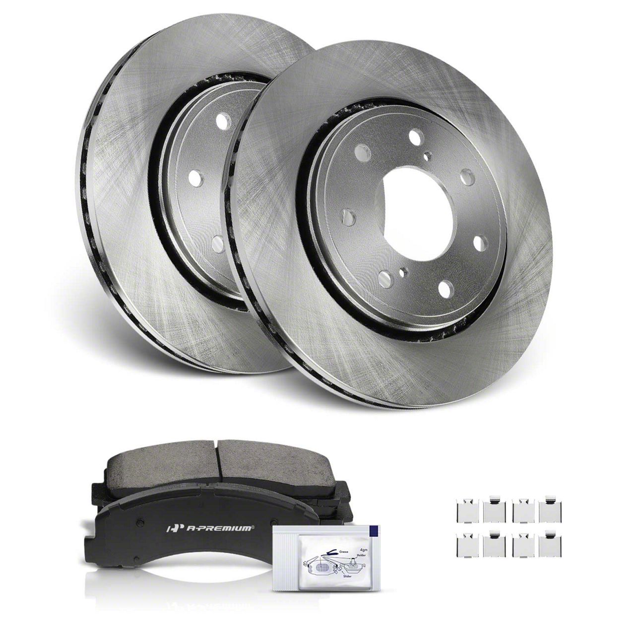 Directly Fit. The A-Premium Disc Brake Rotors & Ceramic Brake Pads offer a perfect fit for your vehicle, providing exceptional performance and durability. This kit includes all the necessary components, such as mounting hardware and high-temperature grease, for a hassle-free and direct installation.