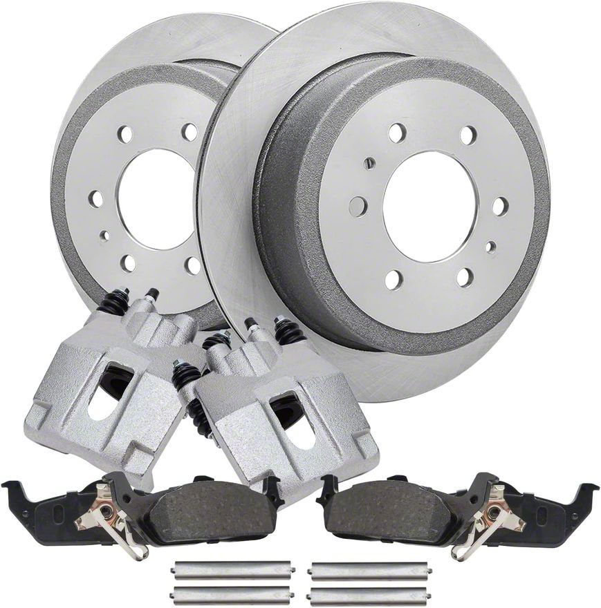 Complete Rear Brake Assembly. The Vented 6-Lug Brake Rotor, Pad and Caliper Kit; Rear combines rotors, calipers, and ceramic pads designed to restore full stopping performance on the rear axle. This kit is essential for maintenance or upgrades, ensuring consistent and reliable braking power for safe driving under various conditions.