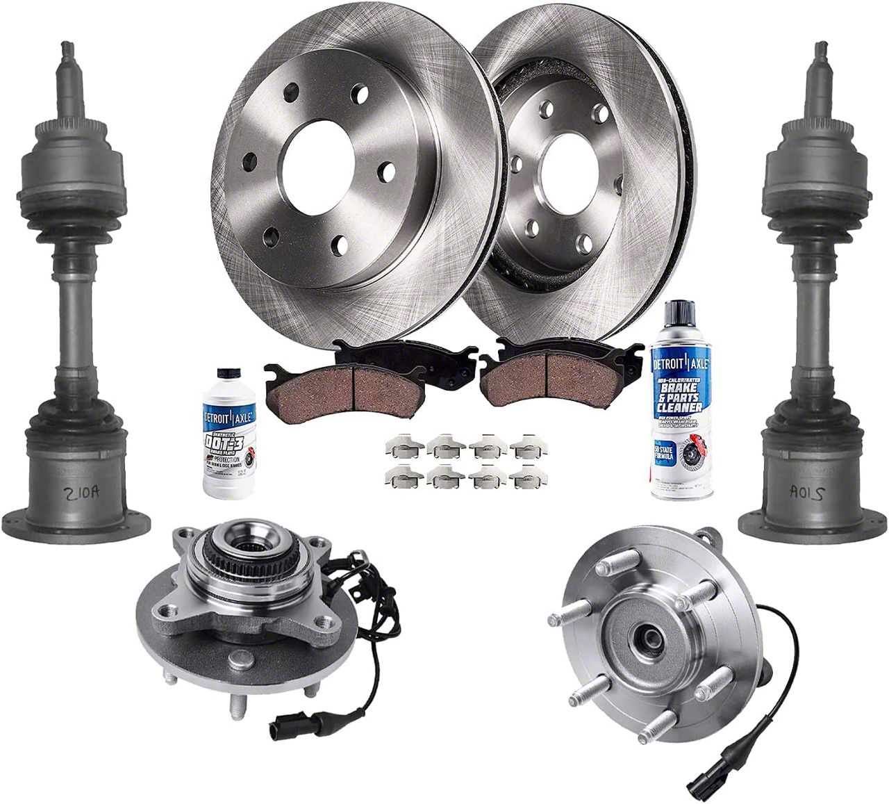 All-In-One Front-End Restoration. The Vented 6-Lug Brake Rotor, Pad, CV Axles, Wheel Hub Assemblies, Brake Fluid, and Cleaner Kit is an all-inclusive solution for restoring the braking and steering performance of your Ford F-150. Designed to replace worn components with premium parts, this kit ensures smoother handling, stronger braking, and enhanced safety during daily drives or demanding conditions.