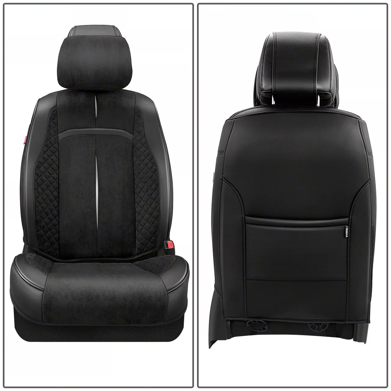 Durable Seat Protection. The Voris Series Front Seat Covers provide superior protection for your vehicle's interior while maintaining comfort and style. Made from premium neoprene material, these covers resist water, UV damage, and everyday wear, making them an excellent choice for drivers who want long-lasting seat coverage. The solid black design offers a sleek, factory-like look that blends seamlessly with most interiors.