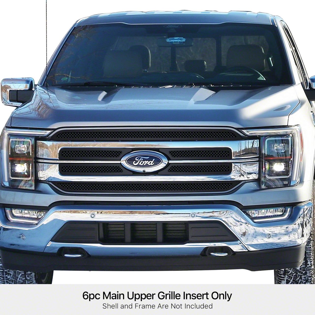 Bold Mesh Styling That Instantly Transforms Your Front End. The Wire Mesh Upper Grille Overlay; Black for the 2021â2023 Fâ150 Lariat gives your F-150 Lariat a more aggressive, highâend appearance with its sleek wovenâmesh design. This modern overlay enhances the factory grille without replacing the entire assembly, making the Wire Mesh Upper Grille Overlay; Black a fast and dramatic way to elevate your Lariatâs frontâend presence.