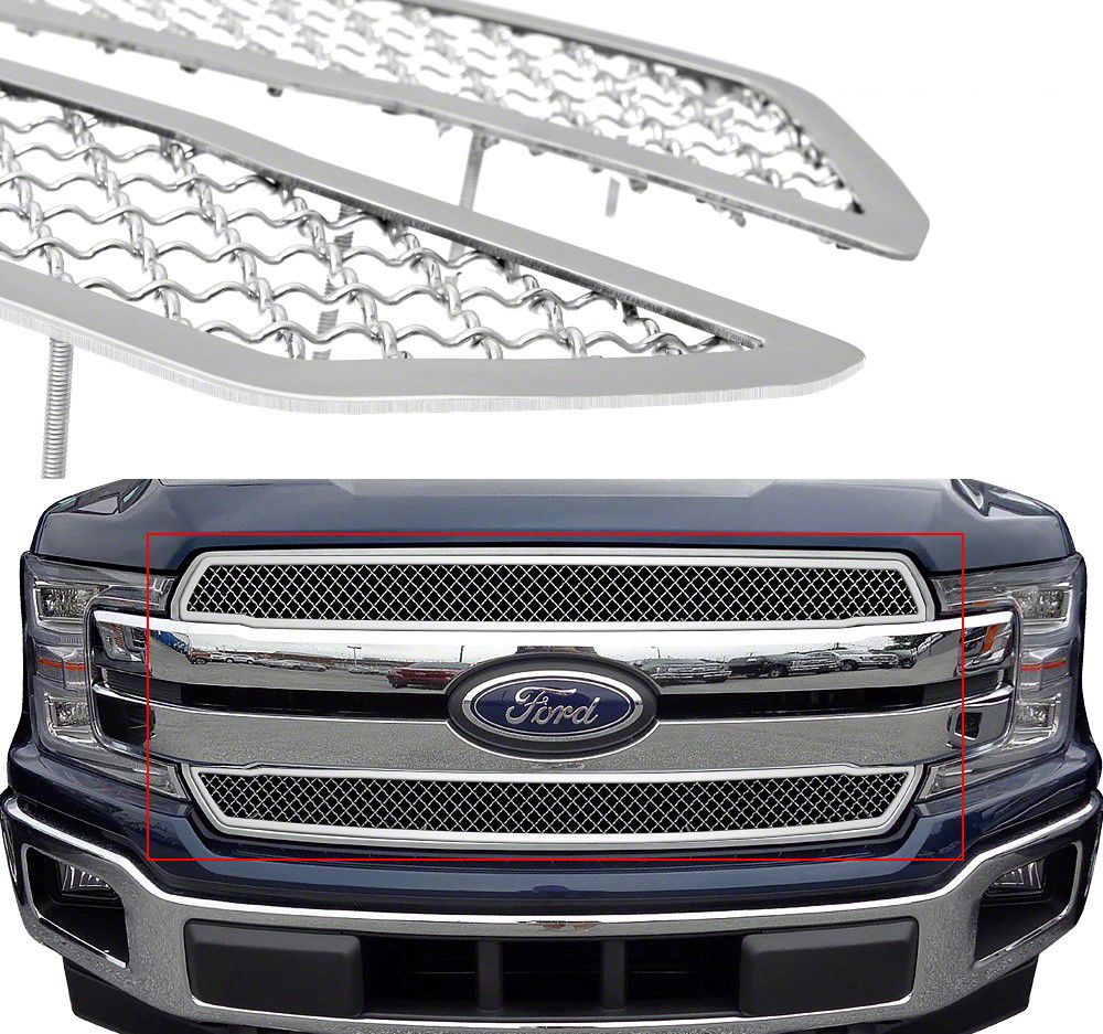 Application. The Wire Mesh Upper Overlay Grilles; Chrome fits all 2018-2020 Ford F-150 Lariat, XL, & XLT models.
