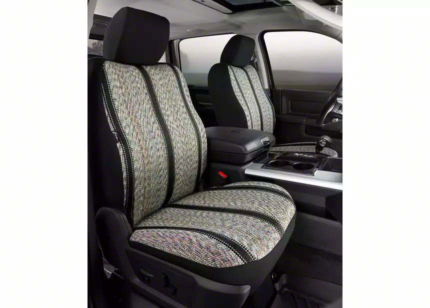 If you are looking for a rugged seat cover that will bring an authentic Western aesthetic to your vehicle, then check out the Fia Wrangler Seat Covers! They are constructed from authentic woven saddle blanket fabric with classic Western styling. Saddle blanket has been around for centuries and is known for being extremely rugged and durable. These seat covers are wear resistant making them the perfect option for heavy industrial use or work trucks. They are perfect for any weather condition as they stay warm in the winter and cool in the summer. They come in black, brown, and grey as well as navy and wine (on select applications).