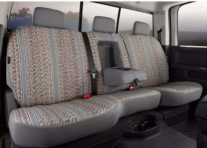If you are looking for a rugged seat cover that will bring an authentic Western aesthetic to your vehicle, then check out the Fia Wrangler Seat Covers! They are constructed from authentic woven saddle blanket fabric with classic Western styling. Saddle blanket has been around for centuries and is known for being extremely rugged and durable. These seat covers are wear resistant making them the perfect option for heavy industrial use or work trucks. They are perfect for any weather condition as they stay warm in the winter and cool in the summer. They come in black, brown, and grey as well as navy and wine (on select applications).