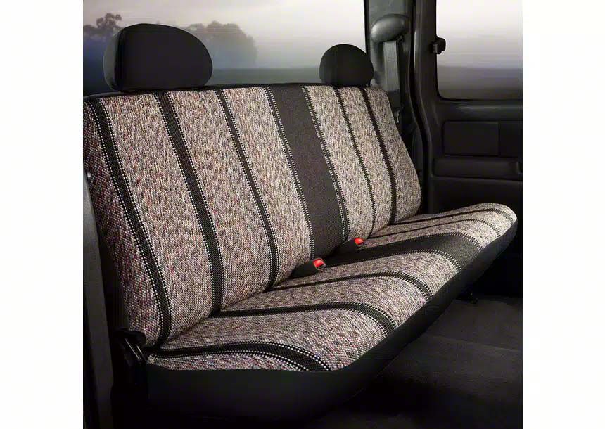 If you are looking for a rugged seat cover that will bring an authentic Western aesthetic to your vehicle, then check out the Fia Wrangler Seat Covers! They are constructed from authentic woven saddle blanket fabric with classic Western styling. Saddle blanket has been around for centuries and is known for being extremely rugged and durable. These seat covers are wear resistant making them the perfect option for heavy industrial use or work trucks. They are perfect for any weather condition as they stay warm in the winter and cool in the summer. They come in black, brown, and grey as well as navy and wine (on select applications).