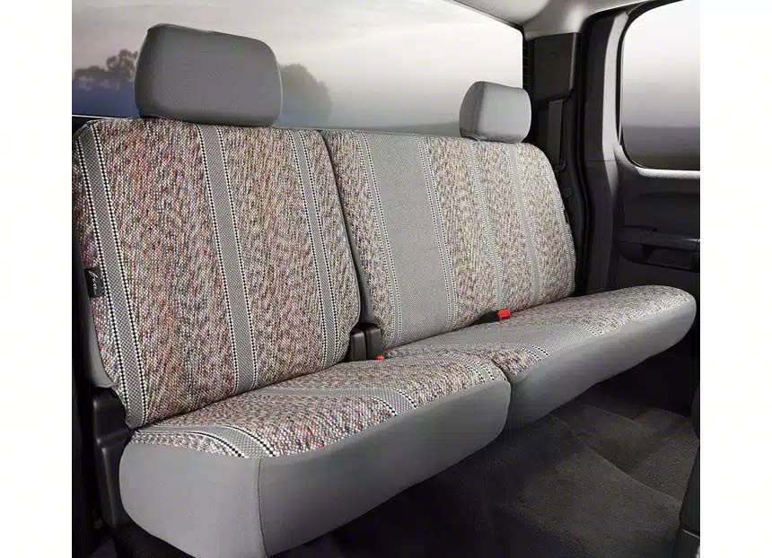 If you are looking for a rugged seat cover that will bring an authentic Western aesthetic to your vehicle, then check out the Fia Wrangler Seat Covers! They are constructed from authentic woven saddle blanket fabric with classic Western styling. Saddle blanket has been around for centuries and is known for being extremely rugged and durable. These seat covers are wear resistant making them the perfect option for heavy industrial use or work trucks. They are perfect for any weather condition as they stay warm in the winter and cool in the summer. They come in black, brown, and grey as well as navy and wine (on select applications).