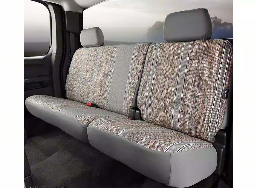 If you are looking for a rugged seat cover that will bring an authentic Western aesthetic to your vehicle, then check out the Fia Wrangler Seat Covers! They are constructed from authentic woven saddle blanket fabric with classic Western styling. Saddle blanket has been around for centuries and is known for being extremely rugged and durable. These seat covers are wear resistant making them the perfect option for heavy industrial use or work trucks. They are perfect for any weather condition as they stay warm in the winter and cool in the summer. They come in black, brown, and grey as well as navy and wine (on select applications).