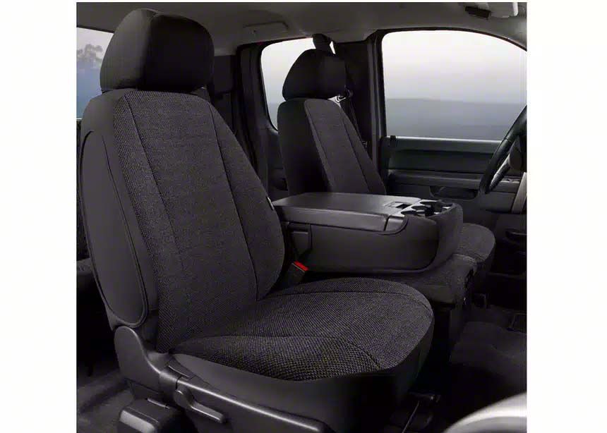If you are looking for tough, durable seat covers you've come to the right place. The Fia Solid Wrangler Seat Covers are constructed from authentic woven saddle blanket fabric and are perfect for those that prefer the simplicity of solid black or grey over a traditional saddle blanket pattern. Saddle blanket has been around for centuries and is known for being extremely rugged and durable. With the Solid Wrangler seat covers you can have the texture and durability of saddle blanket without the western styling. These seat covers are wear resistant making them the perfect option for heavy industrial use or work trucks. They are perfect for any weather condition as they stay warm in the winter and cool in the summer.