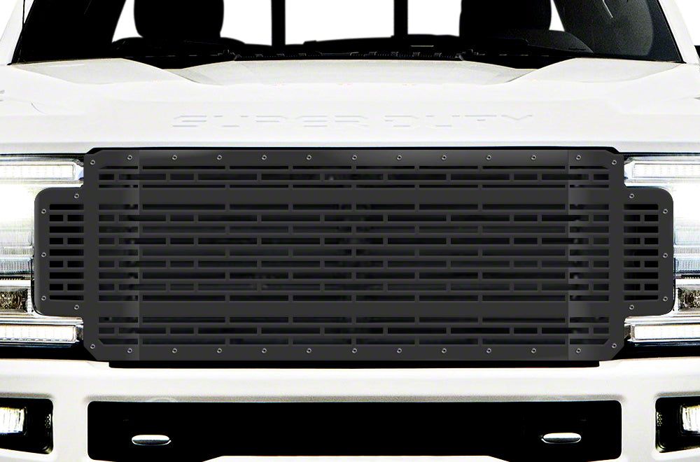 Aggressive Front-End Upgrade. Transform your truck's front-end appearance with this Upper Grille Insert. Designed for 2017-2019 Ford F-250 Super Duty models, it features a distinctive bricks grille design that adds a rugged and aggressive look to your vehicle. This grille insert is a perfect blend of durability and style, making it an excellent upgrade for both on-road and off-road applications.