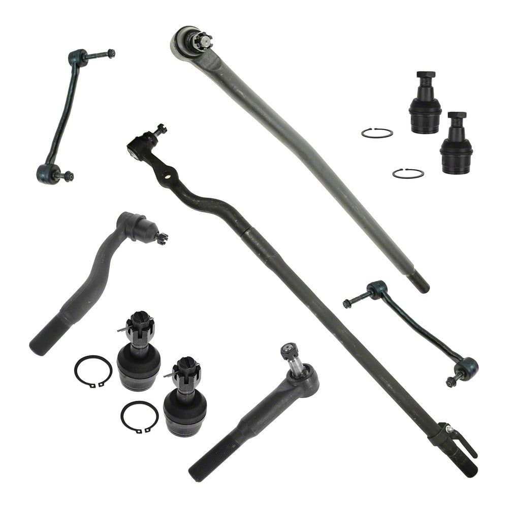Complete Front-End Overhaul for Superior Control. The 10-Piece Steering and Suspension Kit is engineered to restore the front-end integrity of your 2000 to 2004 4WD F-250 Super Duty. This all-in-one solution includes essential steering and suspension components to improve vehicle alignment, ride quality, and overall driving stability— especially important for aging or high-mileage trucks.