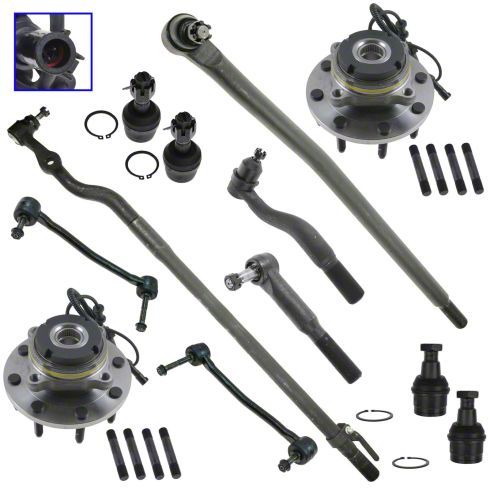 Complete Front-End Rebuild in One Ready-to-Install Kit. This 12-Piece Kit replaces worn steering and suspension components to restore precision handling and proper alignment. Perfect for vehicles with aging front ends, it addresses common issues like loose steering, uneven tire wear, and clunking.