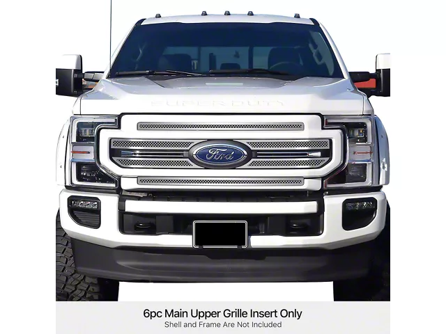 Application. This Upper Overlay Grille fits 2020-2022 Ford F-250 Super Duty Lariat models. It enhances your vehicle’s appearance while offering added protection from road debris and small rocks. Ideal for daily use or heavy-duty applications, it brings durability and visual appeal to your vehicle's front profile.