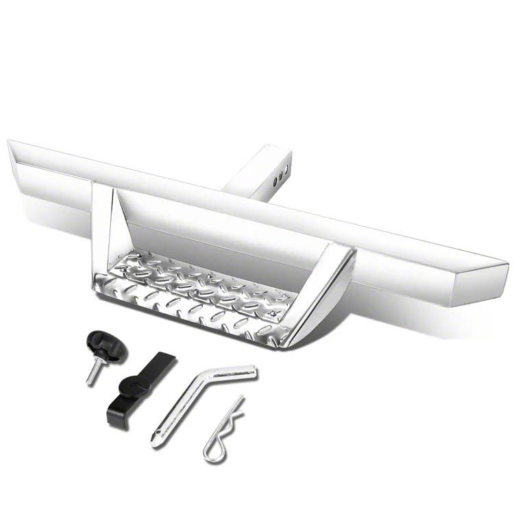 Sturdy Step Solution. The 2-Inch Receiver Hitch Square Step with LED Light offers a secure platform, providing sure footing for safer access to your truck bed. This step bar supports up to 350 pounds and withstands rugged road conditions, making it an ideal choice for those needing greater reach and enhanced stability.