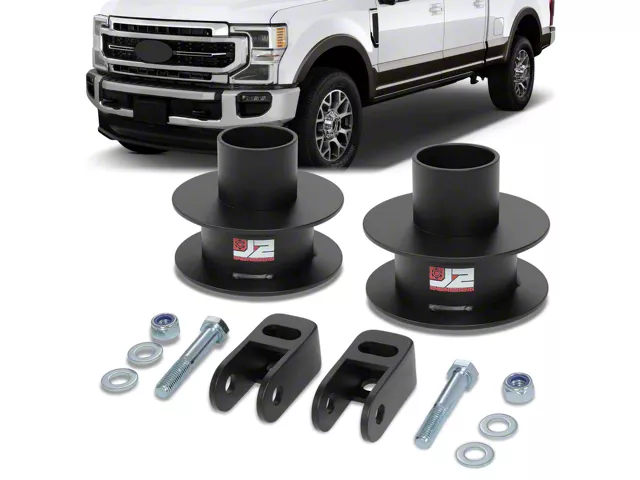 Enhanced Vehicle Stance. The Robust 2.50-Inch Front Leveling Kit with Shock Extenders provides a noticeable improvement in your vehicle's stance and handling. This kit is designed to level the front of your 4WD Ford F-250 Super Duty, offering both aesthetic and functional benefits.