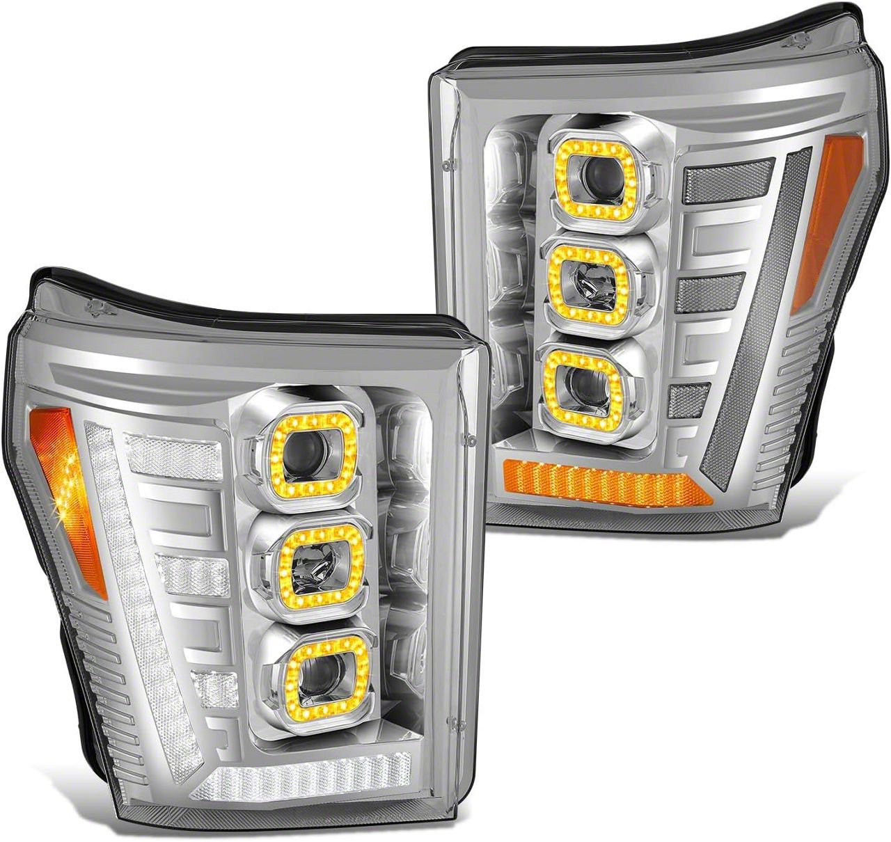 Application. This 3D LED DRL Projector Headlights with Amber Corners fits 2011-2016 F-250 Super Duty.