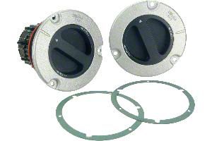 Construction and Appearance. Finished in matte black and raw metal, these locking hubs are built for durability and strength, offering a reliable performance in harsh off-road environments. Their robust design ensures a secure fit and smooth operation, making them a key upgrade for vehicles that need dependable four-wheel-drive engagement when tackling rugged terrain.
