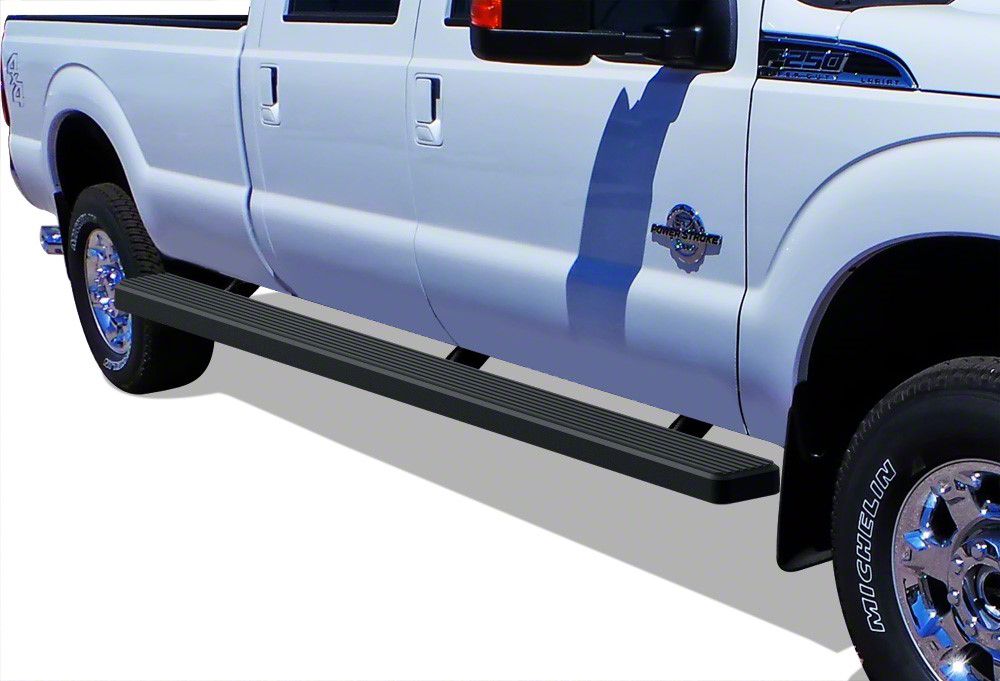 Application. These 5-Inch iStep Wheel-to-Wheel Running Boards; Black are designed to fit 2011-2016 Ford F-250 Super Duty SuperCrew models with 6-3/4-Foot Bed. Driver and passenger side included.