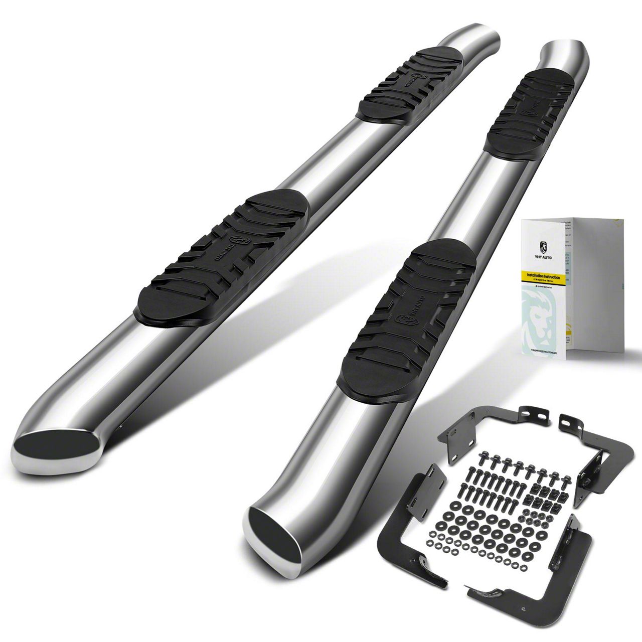 Construction and Appearance. Built from strong steel tubing with a corrosion-resistant coating, these step bars feature a five-inch oval profile and 45-degree bent ends for a clean, integrated look. Non-slip step pads ensure safe footing in all conditions, and the polished chrome finish adds a durable, high-shine accent to your truck's profile.