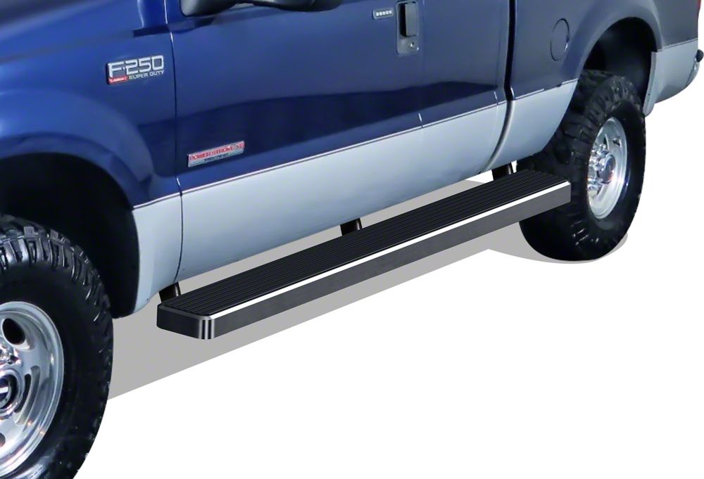 Stylish and Functional Access. The Six-Inch iStep Wheel-to-Wheel Running Boards deliver enhanced accessibility and protection for your F-250 Super Duty. These full-length boards offer an extended step surface from cab to bed, making it easier to access both the cabin and the truck bed while improving overall vehicle appearance.