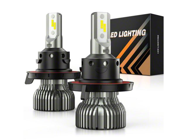 Construction and Appearance. Each bulb features a combination of raw metal and matte black finishes, lending a rugged, high-performance aesthetic. Built in the H13/9008 format, these LED bulbs deliver consistent brightness and a longer lifespan while producing less heat compared to traditional bulbs.
