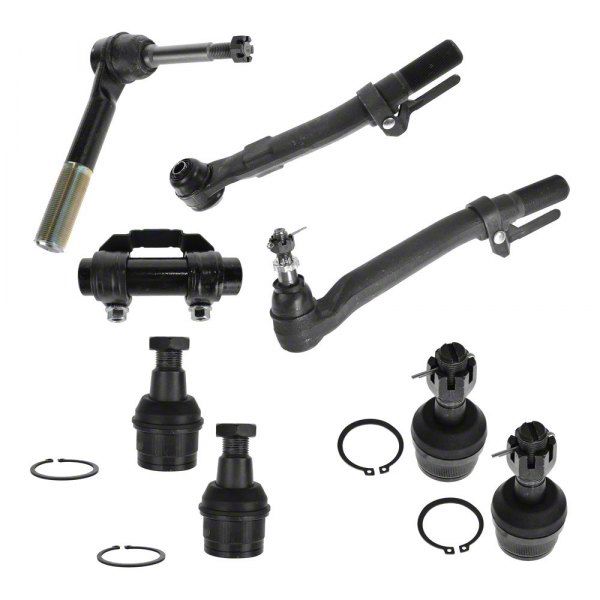 Steering Restoration. Whether you're a trained mechanic or a regular automotive enthusiast, the 8-Piece Steering and Suspension Kit is an outstanding choice to restore your F-250 Super Duty to its original handling and ride comfort. This high-quality kit contains all the essential components required for a complete steering and suspension overhaul, including ball joints, tie rods, and adjusting sleeve.