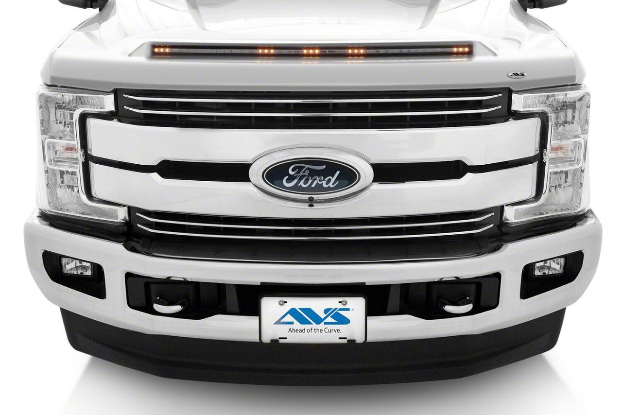 Premium Hood Styling. Are you looking for the perfect hood accessory that combines aesthetics and protective qualities? The Color Match Aeroskin LightShield Hood Protect from AVS might be the answer. The oxford white color makes a wonderful addition to any truck, while the 5 LED integrated markers enable you to use additional amber lighting when connected to the parking lights circuit.