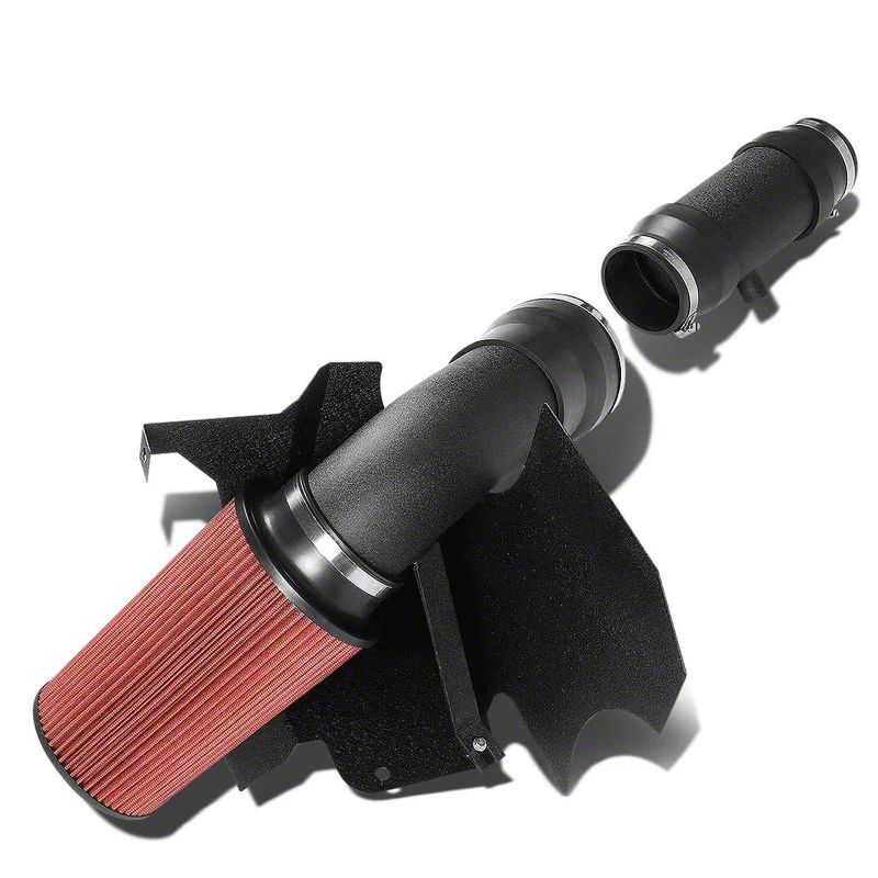 Aluminum Cold Air Intake with Red Filter and Heat Shield; Black