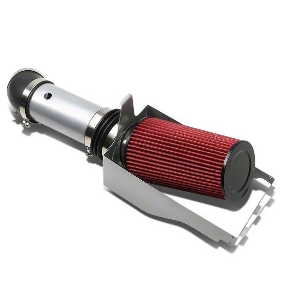 Aluminum Cold Air Intake with Red Filter and Heat Shield; Silver