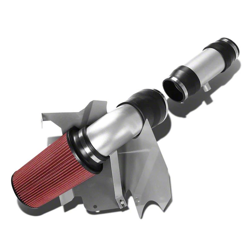 Aluminum Cold Air Intake with Red Filter and Heat Shield; Silver