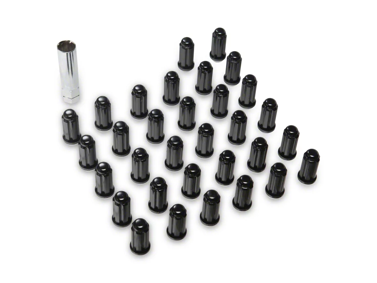 Durable and Secure Wheel Fastening. The Black Spline Lug Nuts are designed to provide superior strength and security for your vehicle's wheels. This set of 32 lug nuts features an M14x1.5 size, making them a perfect fit for your F-250 Super Duty.