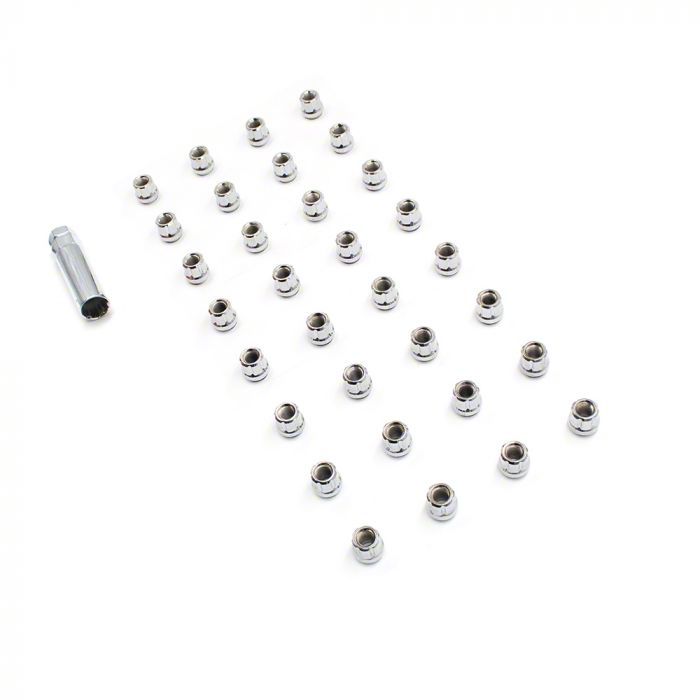 Gleaming Plating. Built to last, these lug nuts boast a 10.9-grade construction, offering enhanced durability. The kit, containing a set of 32, is a testament to strength with its carbon steel core enveloped in gleaming chrome plating.