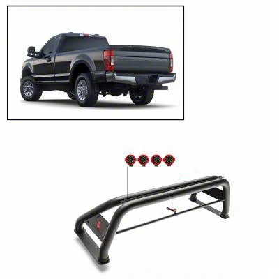 Application. The Classic Roll Bar with 7-Inch Red Round LED Lights; Black fits 1999-2026 F-250 Super Duty models.