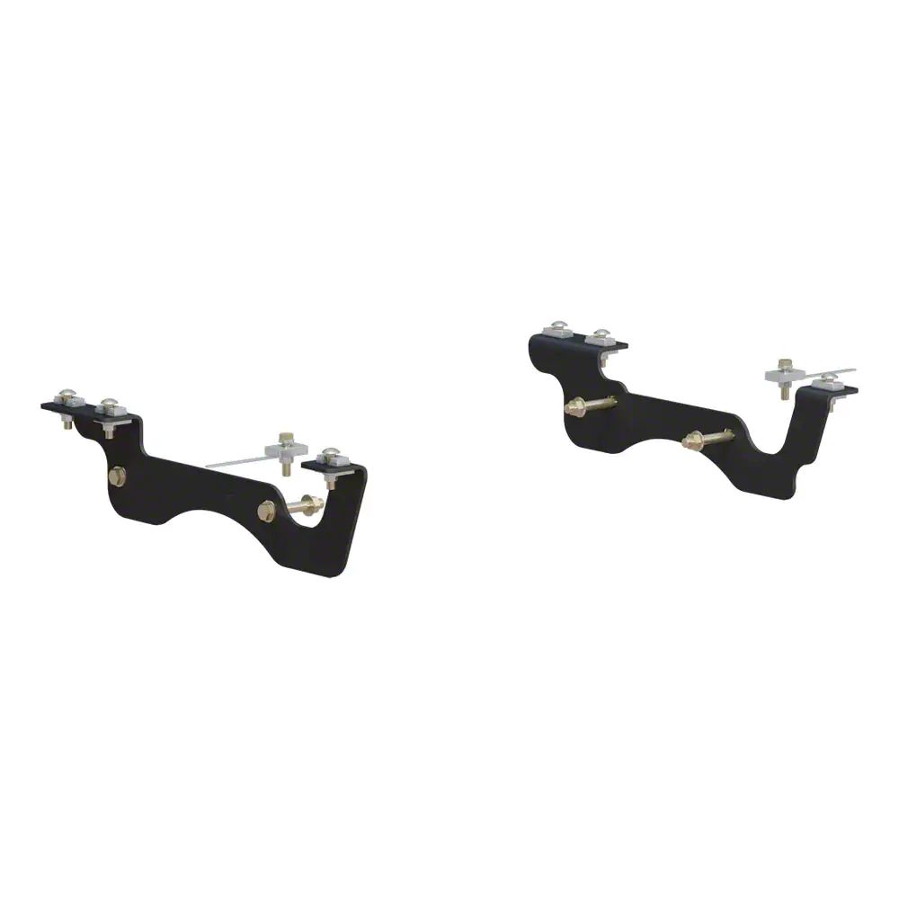 Construction and Appearance. Finished in matte black, the brackets offer a clean and durable appearance while resisting rust, abrasion, and harsh weather conditions. Built from robust steel, they're rated for up to 30,000 pounds GTW when used with compatible base rails (Part Number 16205), ensuring reliable performance even under demanding loads.