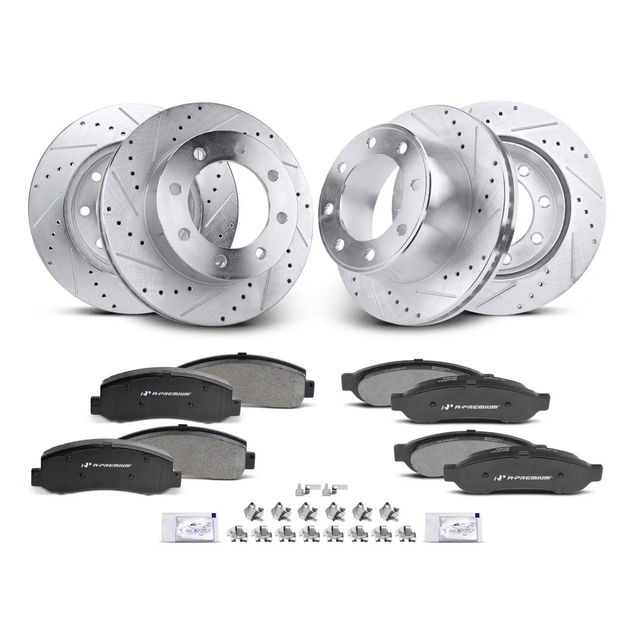Application. This Drilled and Slotted 8-Lug Brake Rotor and Pad Kit fits 2011-2012 4WD Ford F-250 Super Duty Models.
