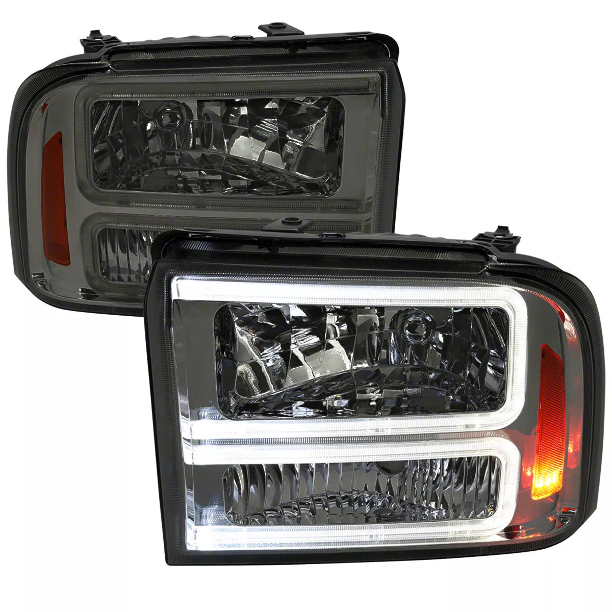 Application. This Dual LED C-Bar Factory Style Headlights (Chrome Housing and Smoked Lens) fits all 2005-2007 Ford F-250 Super Duty Models.